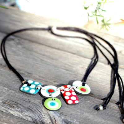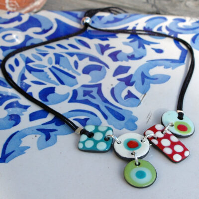 Materiales de alta calidad. Hipoalergénico. Utilizo arcilla negra y esmaltes cerámicos no tóxicos. Cada pieza está pintada a mano.