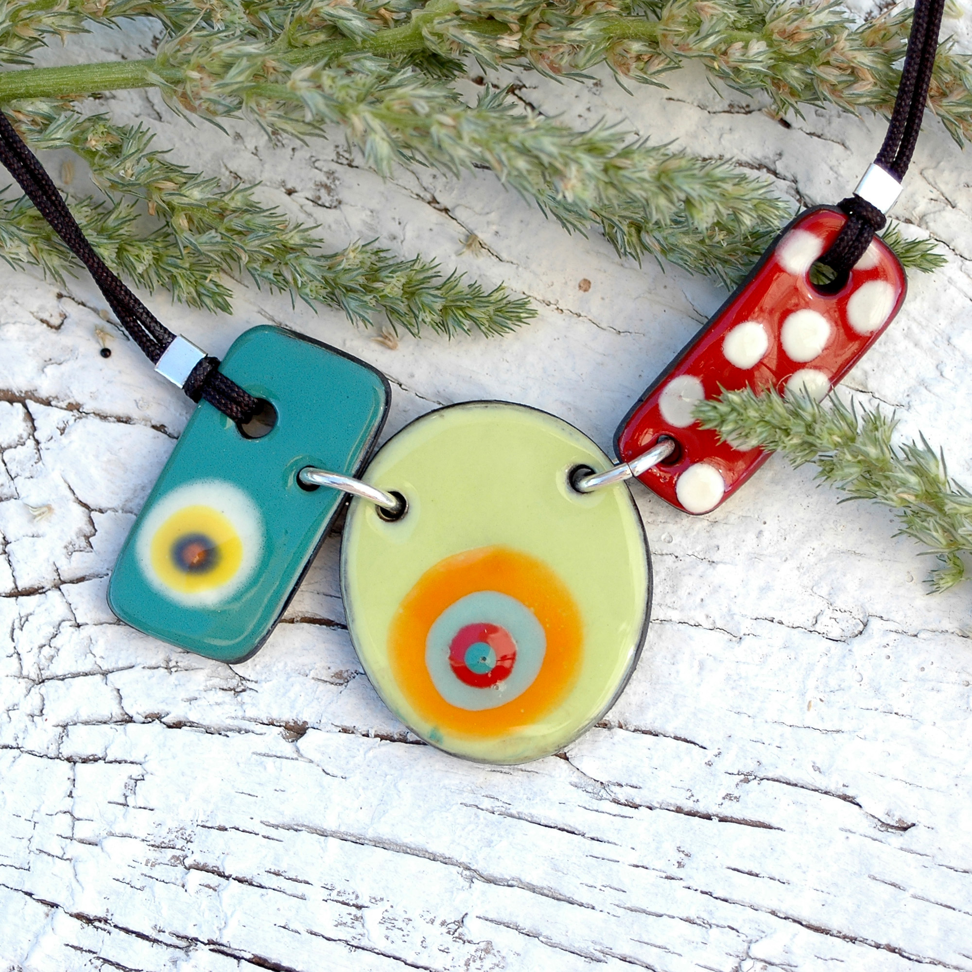 Este collar es ajustable, podrás llevarlo como collar o como gargantilla. Es original, liviano y muy creativo. Combinan las formas geométricas con los estilos psicodélico y mediterráneo. Las tres piezas están unidas mediante anillas de plata de 1,5 mm de espesor. El sistema de cierre está compuesto por una bola de plata que se desliza por el cordón de nylon hasta dejarlo a la altura que desees. Es una joya preciosa para lucirla en tu escote y llamará la atención de quien la mire. El estilo es atemporal y no te cansarás de lucirla. ¿Te atreves?